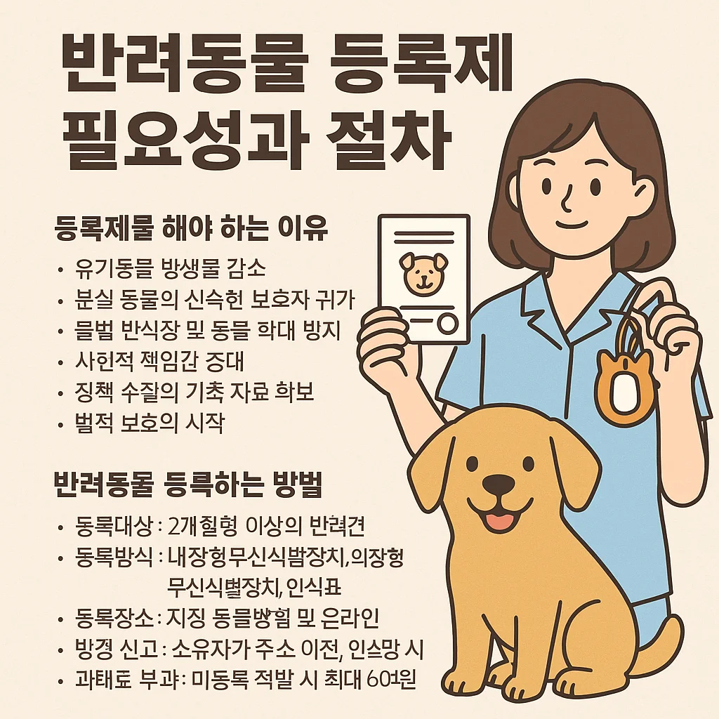 반려동물 등록제는 유기동물 문제를 줄이고 반려동물의 생명권과 보호자의 책임을 강화하는 제도로, 모든 반려인이라면 반드시 인지하고 실천해야 할 중요한 정책입니다. 이 글에서는 등록제를 시행해야 하는 사회적, 윤리적, 현실적 이유와 함께 실제 등록 방법에 대해 자세히 설명합니다.