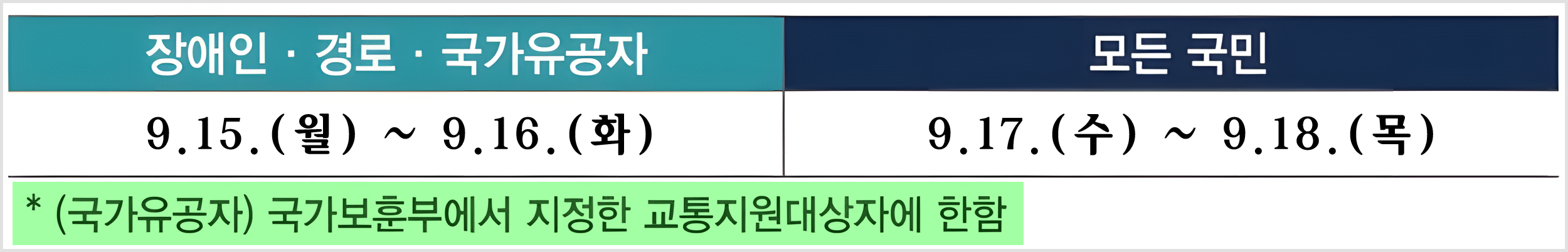 | 장애인, 경로, 국가유공자 (교통지원 대상) |